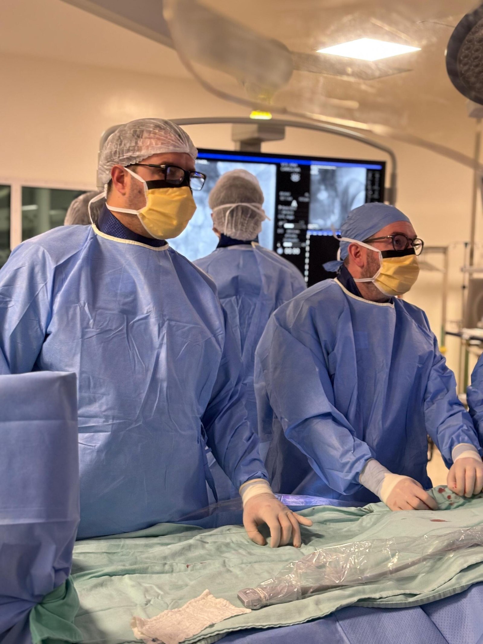 O cirurgião vascular insere cateteres e dispositivos através dessas punções, acessando os vasos sanguíneos por dentro, guiado por imagens em tempo real.